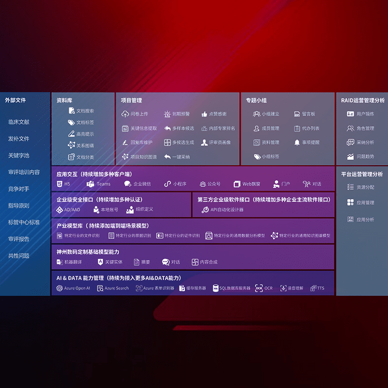 医疗器械产品上市前,,,要熟悉严格与繁复评审标准,,,整理分析监管机构指导文件中的海量信息。。。企业急需一个智能化解决方案,,,,提升知识管理效率,,,,提高评审通过率,,以提升其市场竞争力。。。